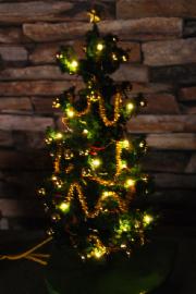 f dem ersten Bild links kann man noch die LED mit den Kabeln erkennen. Beim Bild rechts sind dann schon alle LED elektrisch mit einander verbunden und verlötet. Über drei Stunden Arbeit stecken in dem ca. 20cm hohen Weihnachtsbaum. Aber die Mühen haben sich doch wirklich gelohnt. Zwar haben nicht alle 16 LED auf Anhieb geleuchtet und ich musste die ein oder andere Lötstelle nachlöten, aber dann war es endlich soweit und der Weihnachtsbaum erstrahlte. Nach dem Testen