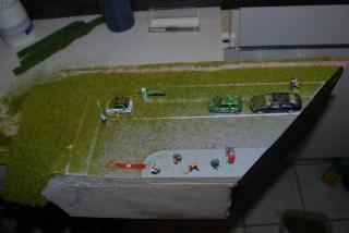 Anschluß ans zentrale elektrische Versorgungsnetz stehen noch aus. Die Einwohnerzahl der Modellbahnstadt steigt mit diesem Modul um weitere 13 Preiserleins, der Fahrzeugbestand um weitere drei PKW-Modelle.