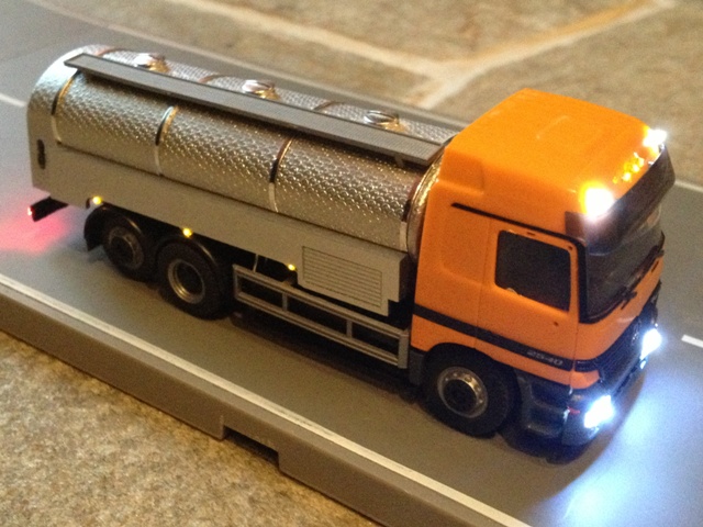 | Modell: | MB Actros M Milchtank-Lkw, Faller 161574. Umbau bzw. Aufrüstung Faller Carsystem Fahrzeug mit Leuchtdioden und DC Car System. |
