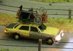 | Modell: | MB W123, Optik in die Jahre gekommen mit Dachgepäckträger. Unverwüstliches Fahrzeug |