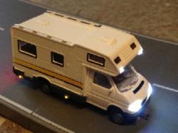 | Modell: | VW Karmann Wohnmobil, Faller 161539. Umbau bzw. Aufrüstung Faller Carsystem Fahrzeug mit Leuchtdioden und DC Car System. |